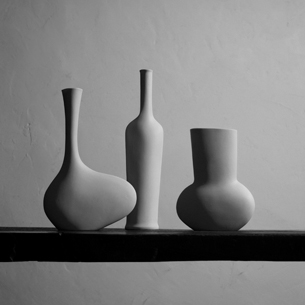 「鋳込み」と呼ばれる技法で、白磁の器を制作しています。デザイン・石膏型制作から器制作までおこなう町の小さな工房です。